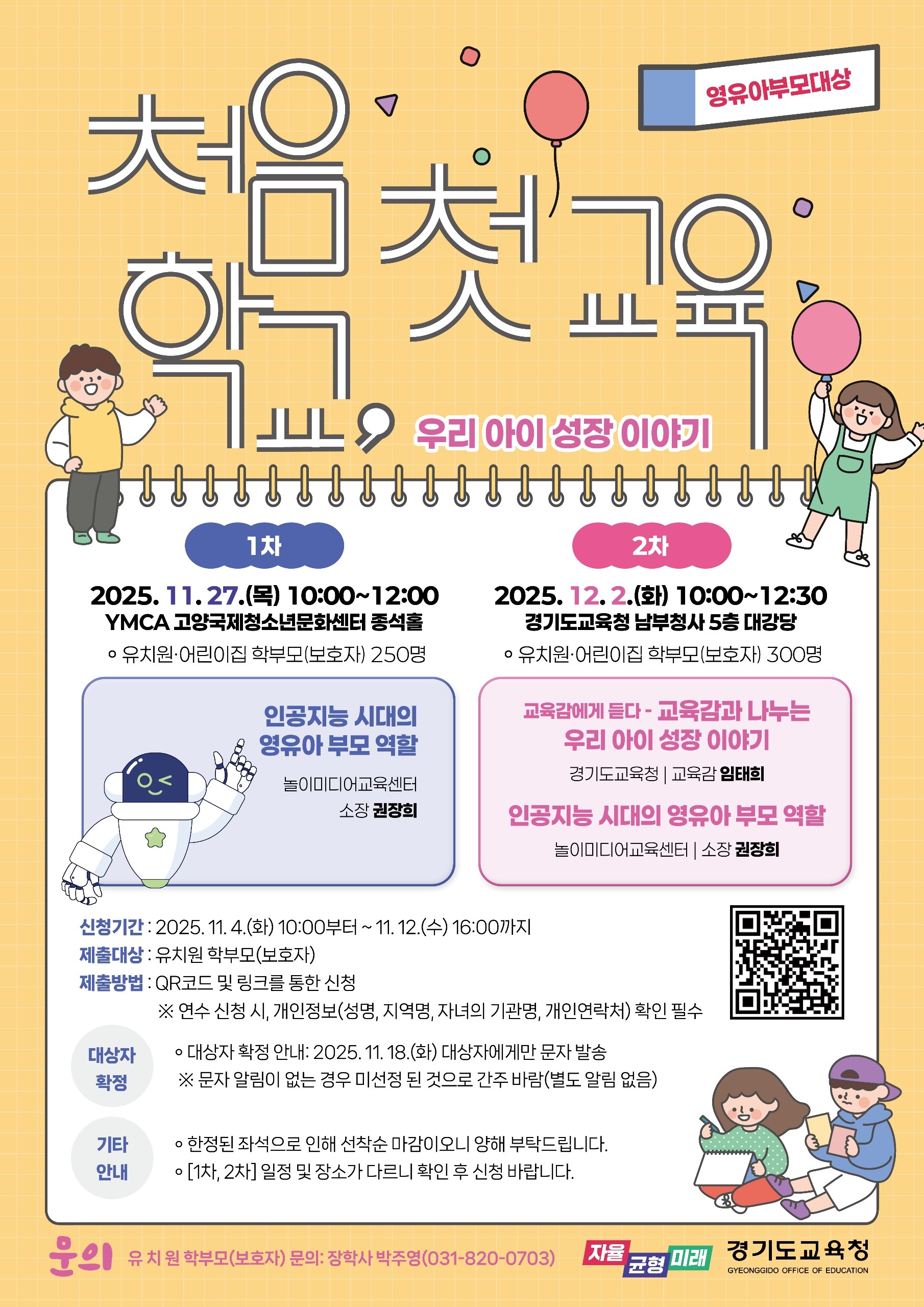 교육청 주관 영유아 부모대상 연수안내입니다.