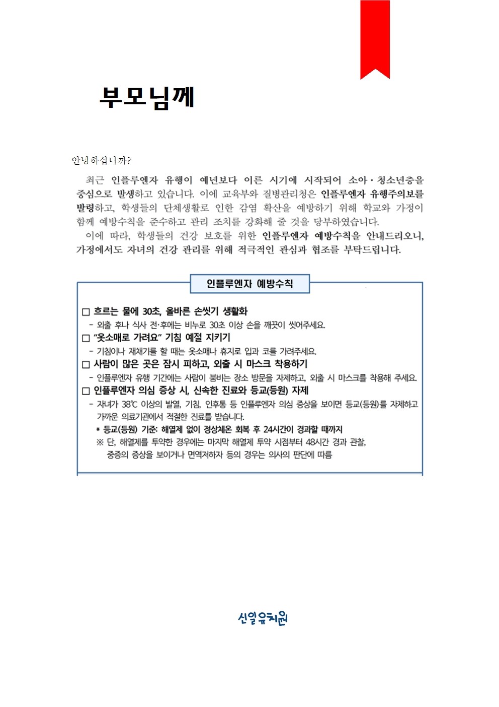 독감예방 안내입니다.
